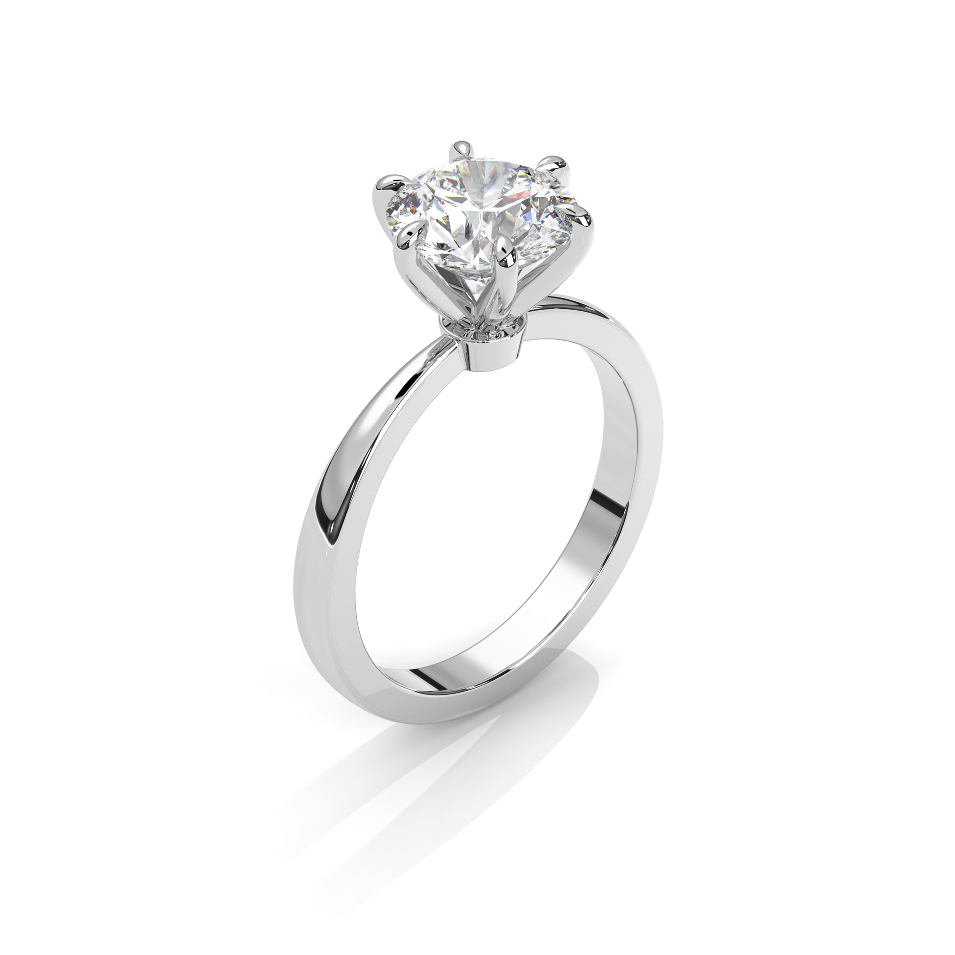 En tidløs, klassisk og smuk forlovelsesring, hvor den glitrende runde diamant står i centrum og fremhæver ringens enkelhed og skønhed.