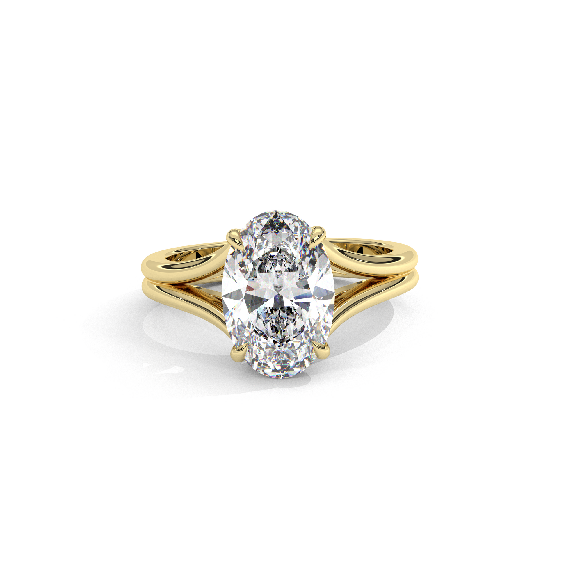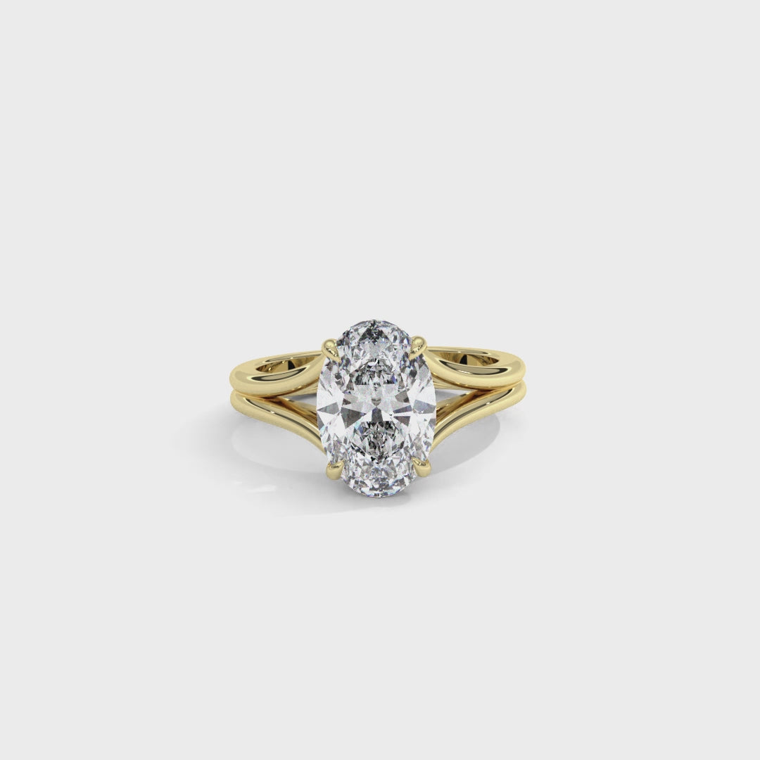 En unik og elegant forlovelsesring med splittet guldbånd, der smukt fremhæver den ovale diamant og giver ringen et eksklusivt udtryk. Prisen varierer efter valg af diamantens specifikationer og valg af guld.